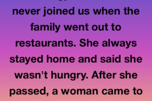 I used to think my grandma was stingy because she never joined us when the family went out to restaurants. She always stayed home and said she wasn’t hungry. After… Read more
