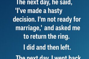 My boyfriend proposed to me, and I said yes. The next day, he said, “I’ve made a hasty decision. I’m not ready for marriage,” and asked me to return the… Read more