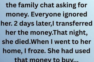 My 68-year-old grandma wrote in the family chat asking for money. All family members ignored her. Two days later, I transferred her the money. That night, she passed away. As… Read more